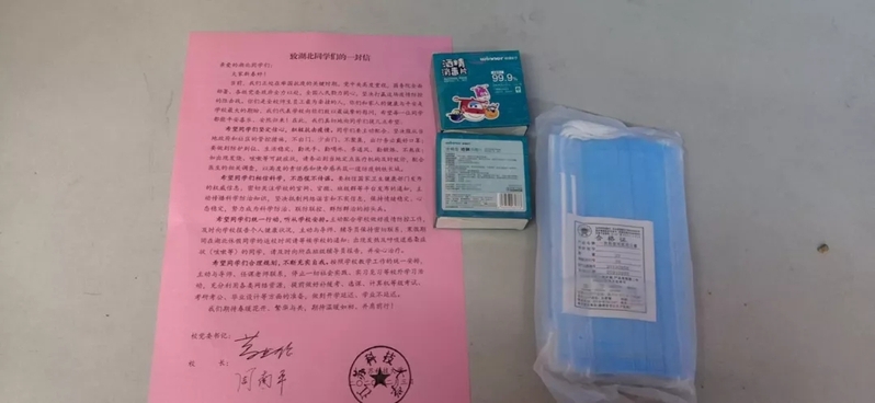 当前正处在举国“抗疫”的关键时期,江苏科大对湖北重点疫区的学子非常关心,支持鼓励他们共同战胜困难、坚决打赢这场疫情防控的阻击战,面对湖北地区防控物资匮乏的实际困难,在广大辅导员调查摸底的基础上,学校经过多方努力、克服多重困难,为因偏远农村、家庭贫困等原因缺少防控物资的165名湖北籍学子筹集了1650个口罩和3300片酒精棉,并由学生处统一通过快递将校领导慰问信、慰问物资邮寄给学子,以解他们的燃眉之急。