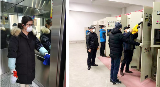 江苏科大物业中心校区主任殷建表示,疫情就是命令,防控就是责任,岗位就是行动,作为党员干部,应该挺身而出,冲锋在前,坚决打赢疫情防控阻击战。物业中心服务员王云霞每天协助做好校区的公共场所的消毒工作,她表示,2020年的春节很特别,疫情当前,我们大家团结一心,为武汉加油,为中国加油。