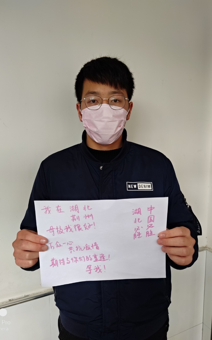 机械学院官震在湖北恩施,他谈到,“1月18日途径武汉返回恩施,在了解到疫情严重性后很担心自己被感染,并立刻在家隔离。虽然被隔离,但是爱并没有隔离,我收到了很多学校领导和辅导员的关怀和叮嘱,就在昨天我也收到了来自学校的疫情防控物资,它飞跃千山万水来到了我手里,真的是一份沉甸甸的牵挂,特别感动学校对我们疫区学子急切的关心关怀。因为疫情不能按时返校,内心也蛮着急,这学期课程压力比较大,跟老师做的项目也没法往后落实,学校及时发布通知,停课不停学,我们大家能够一起在家通过互联网进行学习,也就比较安心了”。