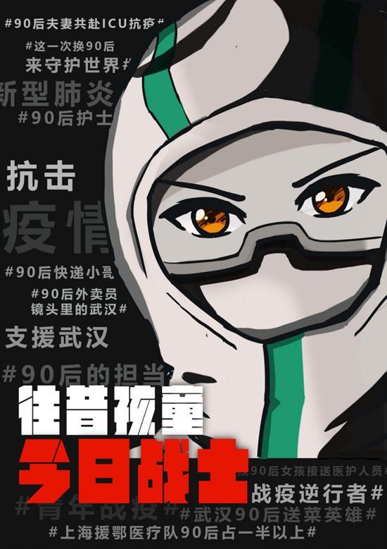 1997年出生的大四学生翁思佳看到许多年龄相当的护士奔赴前线,很有感触,创作了作品《今日90后》,翁思佳说:“2003年非典时我们还很小,完全是被保护的孩子,十七年过去了,我们也可以去保护别人,希望通过这个作品表达年轻人对社会、对人民的责任感,也激励自己去做更多贡献。”