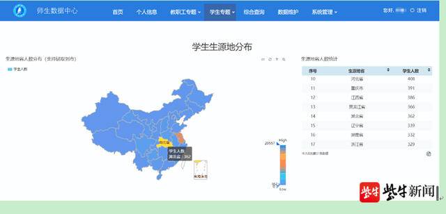 通过大数据技术,学校进一步加强疫情和开学形势研判,描绘了全校2万余名师生的基本数据情况,科学制定了下一步防疫措施。