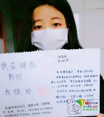 湖北籍学子不但向母校、老师同学们报平安,为自己打气加油,还积极参与到为武汉、为中国加油的活动中来。