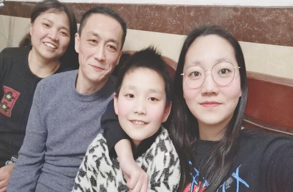 刘子涵与家人合影(父母在淮安市维桥医院工作,父亲医生母亲护士)