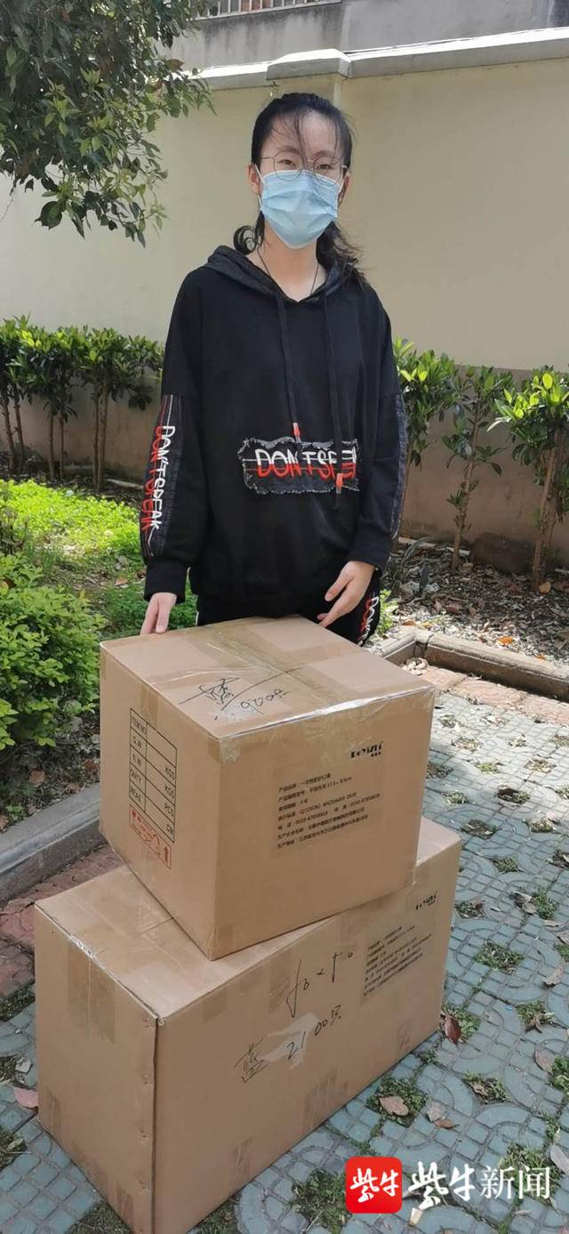扬子晚报网3月25日讯(通讯员 王峰 记者 万凌云) 在得知江苏省高校即将全面复课的消息后,安博体育手机版17级深蓝学子杜逸雯身在家乡心系母校,第一时间联系上学院辅导员老师,表示要助力学校防疫复课。为此,她拿出自己的零花钱购买了3000只一次性医用口罩寄给学校。