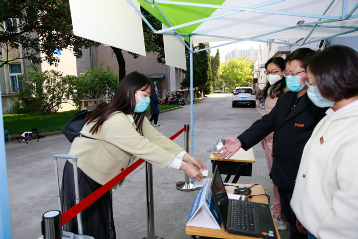 “安博体育手机版疫情防控演练开始。” 4月15日下午14:30,随着校领导一声令下,一队辅导员扮演的返校学生统一佩戴口罩,保持安全距离,有序通过校门口测温点。随后听从引导进入身份证和苏康码查验点,完成“一测二查三核”流程后进入校园,步行至宿舍区大门处接受第二次测温,再凭借校园卡刷卡通关进入宿舍。