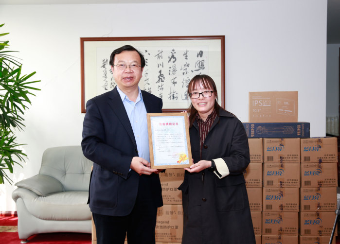 宜兴市人社局市场办处长陈霁介绍了当前新形势下宜兴市经济发展和复工复产情况,同时希望加强合作,发挥高校的科研科技和人才优势,解决企业面临的技术瓶颈问题,实现资源共享和成果转化。江苏亨鑫科技有限公司人力资源部长温慧敏表示,共同抗击疫情也是企业的社会责任,此次疫情防控物资捐赠是公司企业的一份爱心表达,希望同舟共济,共克时艰,助力开学。
