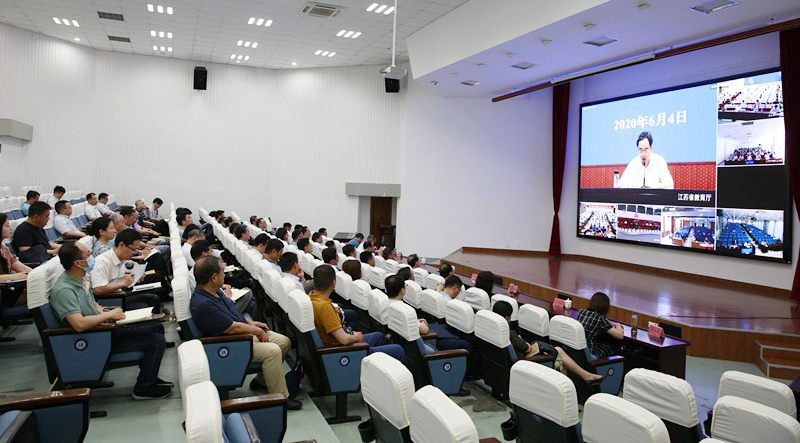 6月4日下午,省委教育工委组织召开全省教育系统全面从严治党工作视频会议。省教育厅厅长、党组书记、省委教育工委书记葛道凯出席会议并发表讲话,省纪委监委驻省教育厅纪检监察组组长张姬雯对省教育系统纪检监察工作提出要求,省教育厅机关党委书记汪国培在主会场主持会议。我校在镇江校区演讲厅设立分会场,在校全体校领导、党委委员、纪委委员、二级党组织书记、职能部门负责人及全体专职纪检监察干部参加会议。