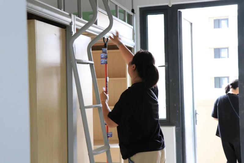 后勤人一直把服务好师生作为头等大事,千方百计为教职工办实事、办好事、谋福利。在炎热的高温下,为了开学广大师生能顺利入住,后勤人一刻都不敢浪费,保时间、保节点、保进度、保质量、保服务,这些词是他们口中的高频词汇。在这个没有空调感觉呼吸都不顺畅的高温天,他们一身汗水、满面灰尘,在炉灶旁洗切挥铲、在现场中往返施工,烈日骄阳埋首苦干,风里雨里接力坚持。