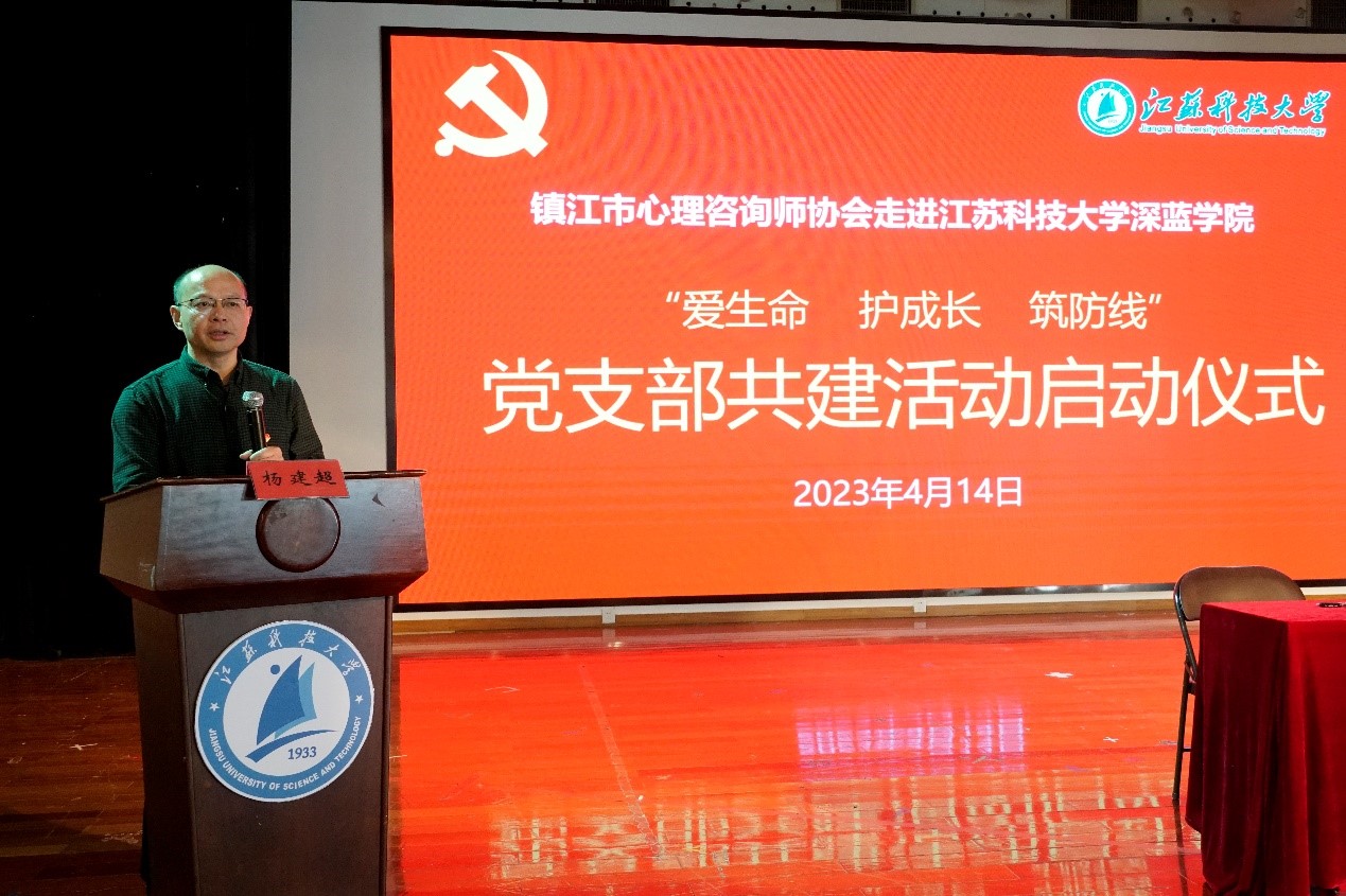 近日,深蓝学院与镇江市心理咨询师协会党支部合作共建启动仪式在梦溪校区东苑四楼举行,学院党总支书记、院长杨建超,市心理咨询师协会会长林霞出席签约仪式并讲话,镇江市部分心理咨询师及学院师生代表、志愿者参加了本次活动,签约仪式由深蓝学院党总支副书记秦向荣主持。