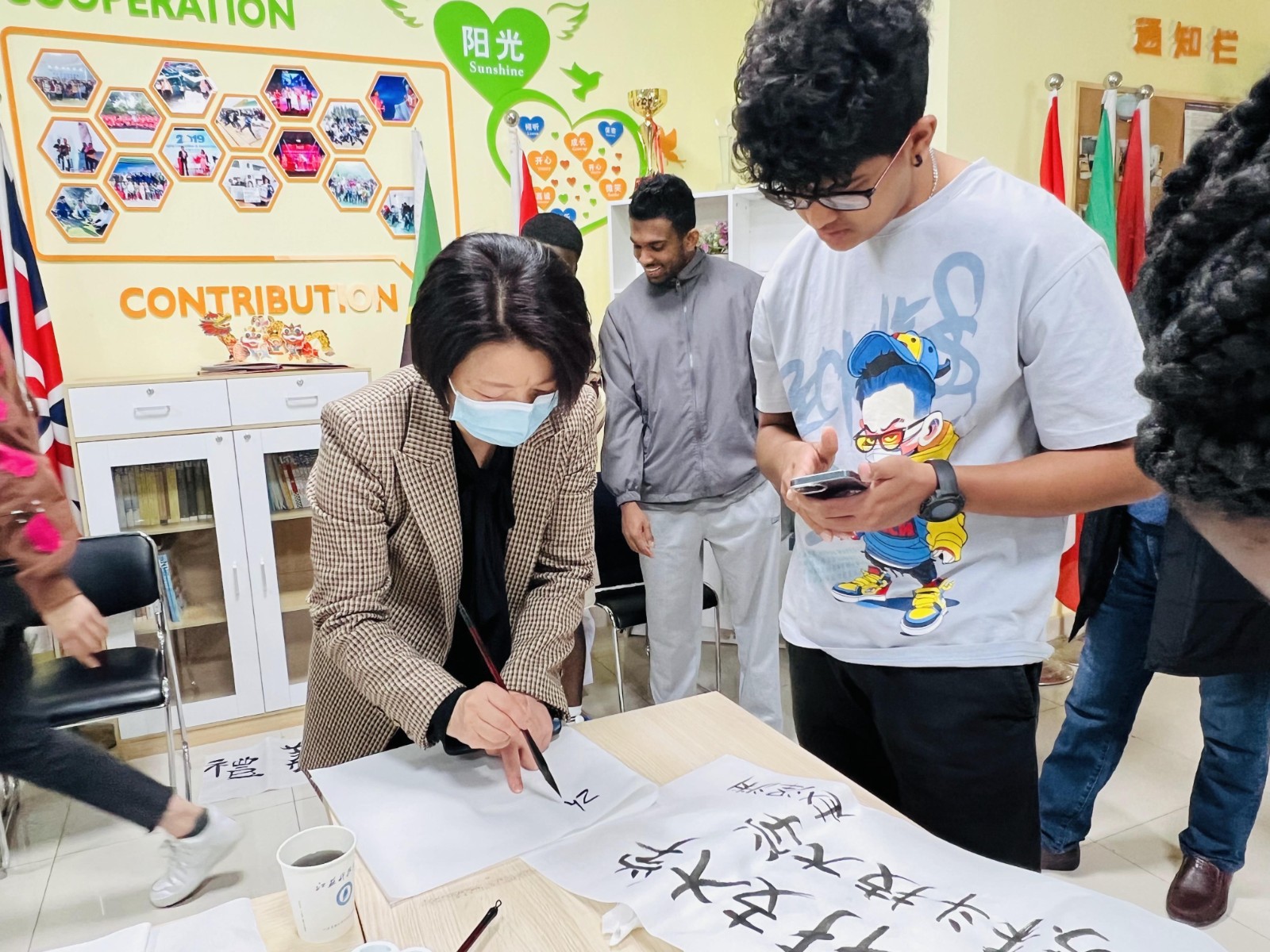 以坚定文化自信为使命担当,以讲好中国故事为远大目标。此次留学生体验中国书法活动致力于让留学生更好地读懂中国,了解中华传统文化,从而进一步能够做中华优秀传统文化的传播者。留学生纷纷表示,能有幸亲历安博体育手机版办学九十周年庆典,用中国最传统的表达方式抒发自己对母校的情怀和依恋,是非常难忘的人生体验,并表示将做好中外文化使者,讲好中国故事,传播中华文化,秉承“船魂”精神,共写绚烂篇章。