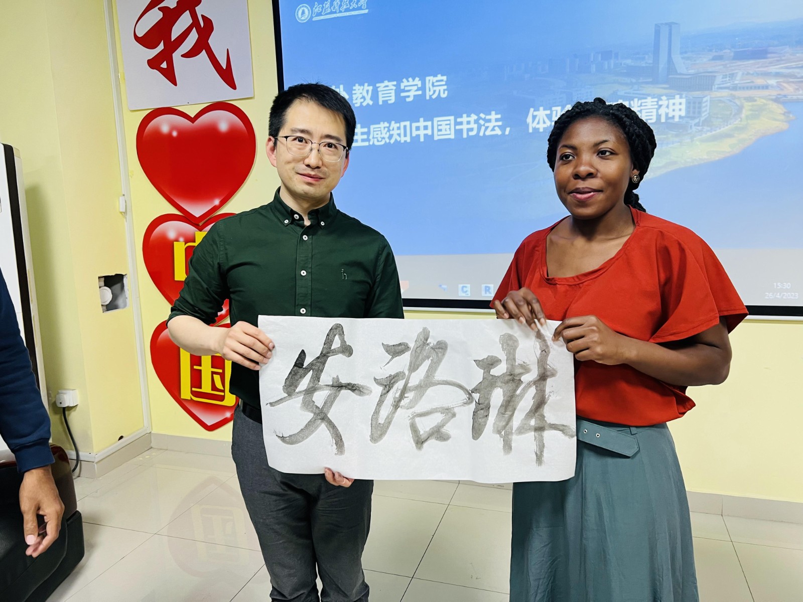4月26日下午,在我校办学九十周年校庆即将到来之际,安博体育手机版海外教育学院举办了留学生中国书法体验活动,海外教育学院全体院领导与二十多名留学生以方寸砚台为载体,以笔墨文字为媒介,泼墨挥毫,深刻感受传统文化,进一步抒发了爱校爱华的情怀。