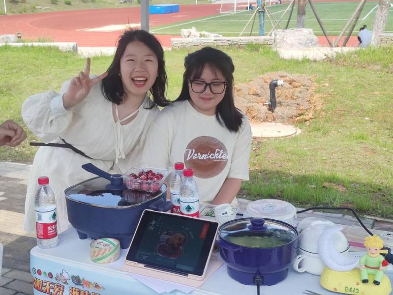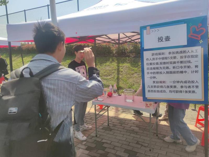 此次活动现场还设置了许多有趣的游戏,如反手夹乒乓球、你画我猜、挤眉弄眼吃饼干、乒乓球入洞、投壶等。通过参与游戏,赢得奖票兑换套圈赢得丰富精美的奖品。生物技术学院和环境与化学工程学院还为美食节定制了“专属”蛋糕,成为美食节当之无愧的“热门”摊位。