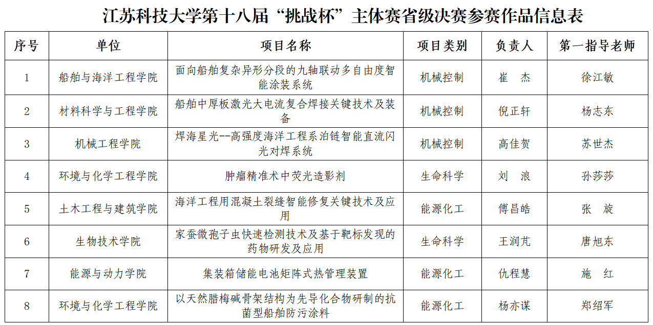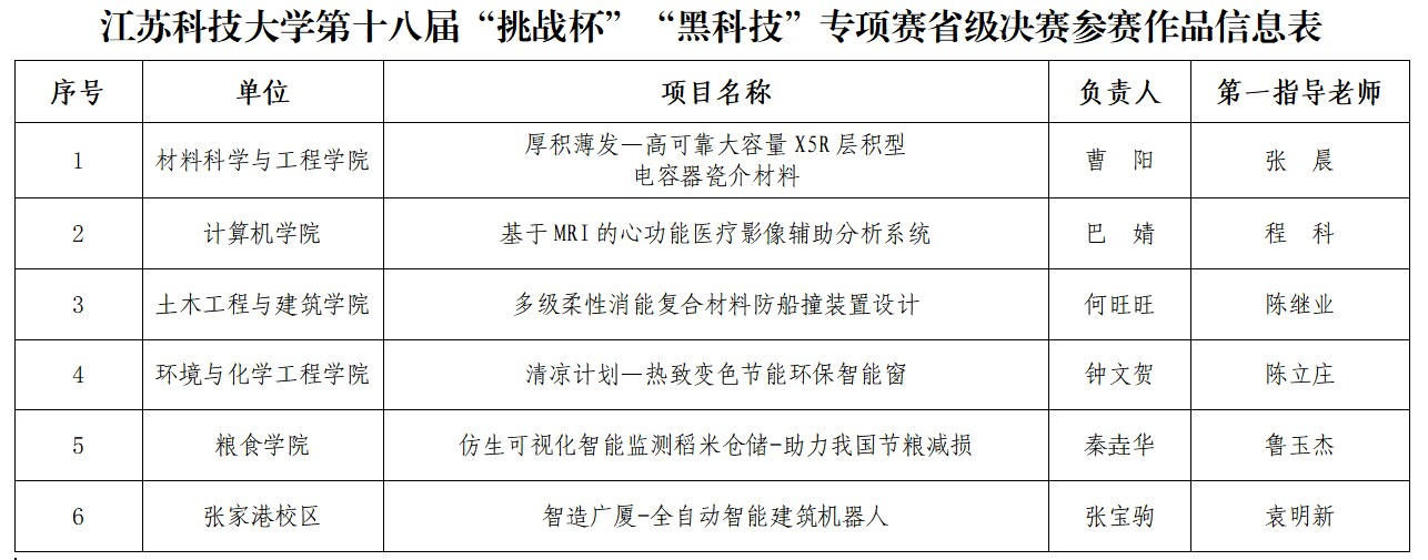 近日,我校开展第十八届“挑战杯”全国大学生课外学术科技作品竞赛备赛指导会,学校党委书记葛世伦以及相关学院院长书记等现场指导。据悉,本届“挑战杯”共有主体赛、“揭榜挂帅”专项赛、“黑科技”专项赛、红色专项赛4个赛道,其中主体赛、“黑科技”专项赛两个赛道江苏省赛决赛将于5月26日-28日在常州大学举办,我校主体赛8个项目、“黑科技”专项赛6个项目共14个项目入围省赛决赛。