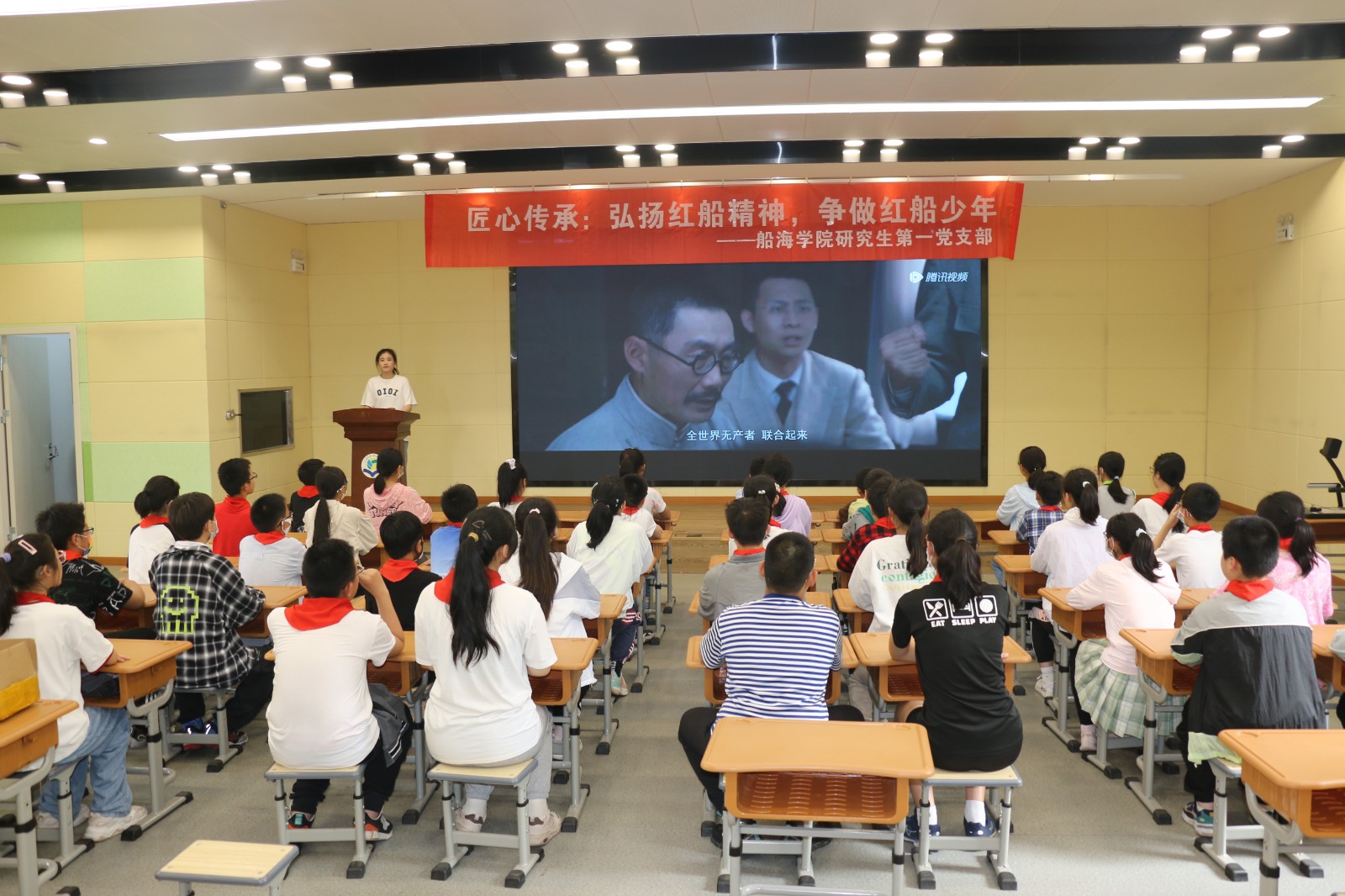 为深入学习贯彻党的二十大精神,赓续传承红船精神,拓展船舶文化宣传阵地,在“六一儿童节”来临之际,船舶与海洋工程学院依托“江苏省科普教育基地”,组织研究生“红船实践团”走进安博体育手机版附属小学,与六年级的小学生们开展了“传承红船精神,争做红船少年”主题实践活动,将红船精神“种”在每一位小朋友的心中。