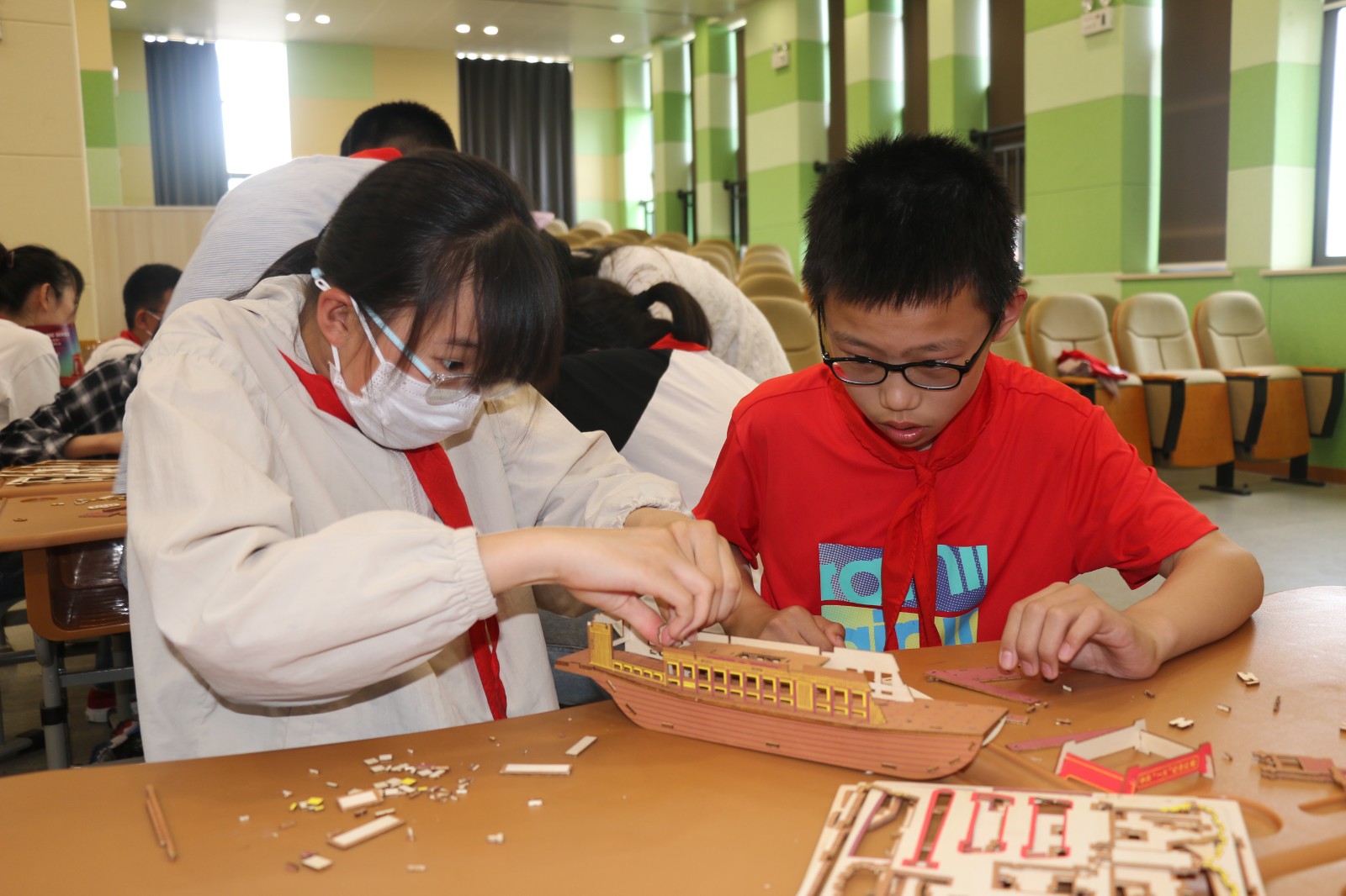 “实践出真知”,只有通过动手、动脑才能让红船文化学习更加深入人心。红船实践团为小朋友们精心准备了南湖红船的缩比模型,通过“大手拉小手”与小朋友们结对完成红船模型的拼制。在红船实践团成员和班主任的帮助下,小朋友们纷纷完成了自己的作品,制作出了一艘艘精美的“红船”。实践团成员表示,通过这种寓教于乐的方式,不仅可以满足小朋友的童心,同时还可以在模型制作过程中共同感悟红船精神,加深小朋友对红船的印记,将“红船精神”在他们幼小的心中埋下种子。