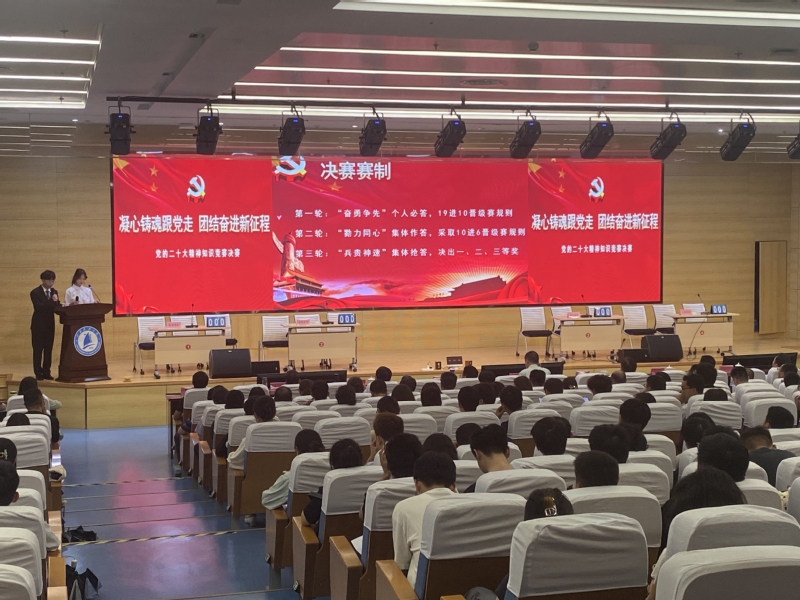 为深入开展学习贯彻习近平新时代中国特色社会主义思想主题教育,持续推动学习贯彻党的二十大精神走深走实,引导广大学生坚定不移听党话、跟党走,争做有理想、敢担当的、能吃苦、肯奋斗的新时代好青年,6月2日下午,“凝心铸魂跟党走,团结奋进新征程”党的二十大精神知识竞赛决赛在长山校区图书馆B105报告厅举行。校党委副书记汤建,党委常委、组织部部长李恒川出席本次大赛。党务工作专员姚允柱担任大赛指导专家,部分机关部门负责人、各学院书记、副书记、组织员、学生党支部书记、学生代表现场观摩比赛。