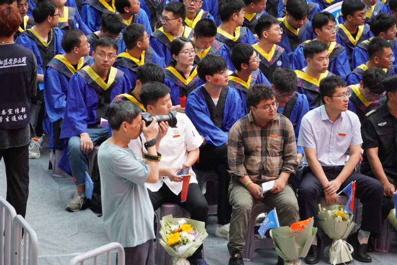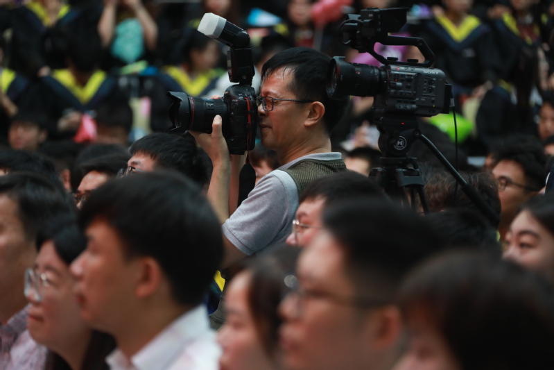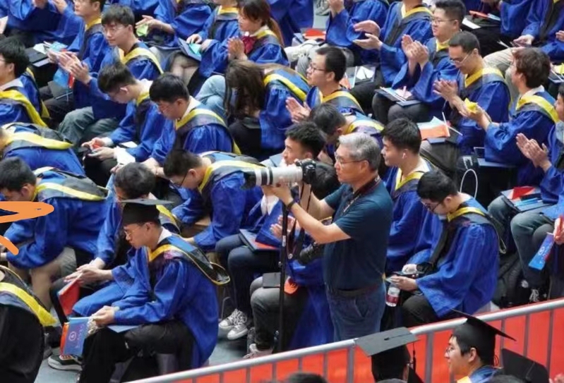典礼现场,摄影师们不辞辛劳穿梭于主席台前、会场、看台,用手中相机,准确追焦,辛勤汗水谱写盛典时光。记录下一个个鲜活的镜头,捕捉学子们的高光时刻。有拨流苏学子们感动的微笑、有兄长校友分享成功的喜悦、有海外留学生学成的感动、有校长诗意青春的赞美和贴近学子感人的话语。一瞬成永恒,定格为江科大历史美好的记忆。