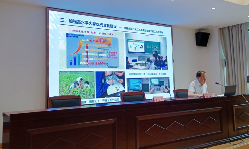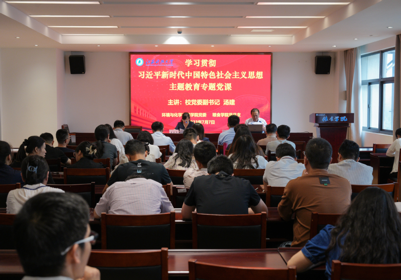 7月7日下午2点,校党委副书记汤建在学校粮食学院楼为粮食学院、环境与化学工程学院、宣传部全体教师党员及部分学生代表讲授“深刻领会中国式现代化内涵,加强高水平大学优秀文化建设”主题教育专题党课。主题党课由环境与化学工程学院党委书记袁爱华主持。
