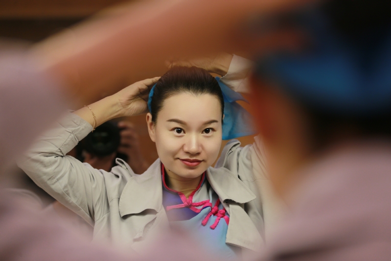 这些年每个暑假的前两周,陈欢都是在紧张有序的排练中度过。今年她和团队一鼓作气忙到7月21日,“线下的合练结束后,我们还有一波线上的训练。”台上一分钟,台下十年功。2006年参加工作至今,陈欢主要负责学校美育实践活动开展以及大学生艺术团的建设管理和指导工作,至今已是第17个年头,被大家亲切地称为“欢导”。
