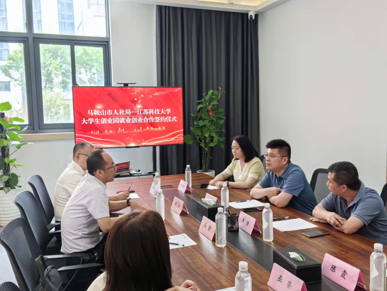马鞍山人社局副局长宋冰介绍了马鞍山市的市情市况、人才引进和大学生就业创业政策。双方座谈交流学校的专业与马鞍山市的产业、行业和企业发展契合度情况,提出生物技术、食品工程、化学化工等专业未来合作计划,就推进校政企深度合作对接、供需精准匹配,引导我校毕业生赴马鞍山市实习、就业与创业,建立常态化招才引才工作机制等达成了共识,签署了《大学生创业园就业创业合作协议》。