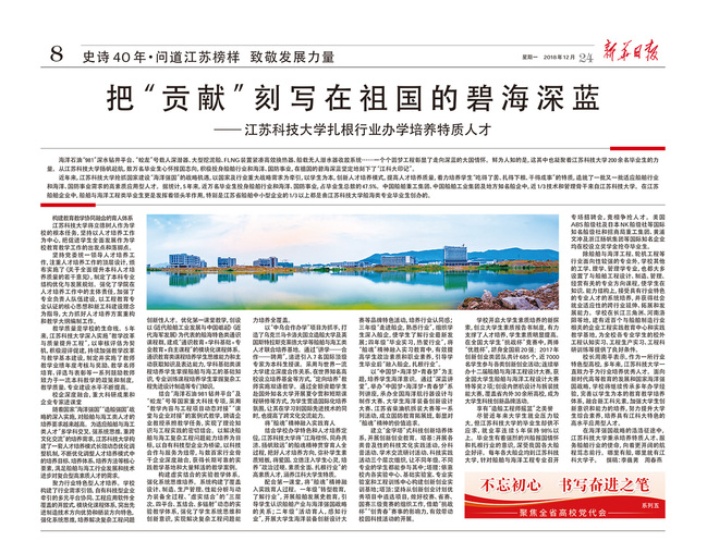 新华日报《把“贡献”刻写在祖国的碧海深蓝——安博体育手机版扎根行业办学培养特质人才》