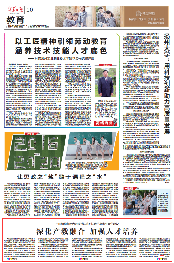 新华日报《中国船舶集团大力支持安博体育手机版高水平大学建设--深化产教融合 加强人才培养》