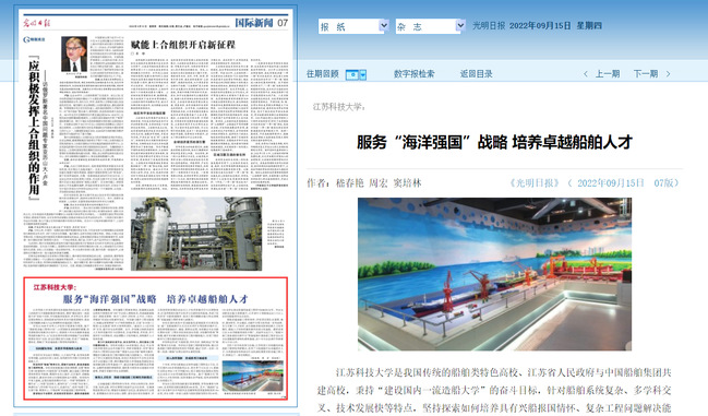 光明日报《安博体育手机版 服务“海洋强国”战略 培养卓越船舶人才》(2022年9月15日)