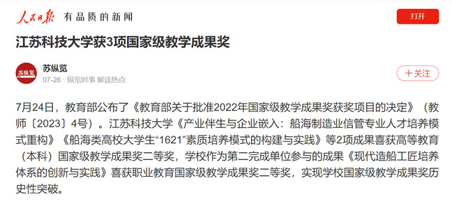 人民日报《安博体育手机版获3项国家级教学成果奖》(2023年7月26日)