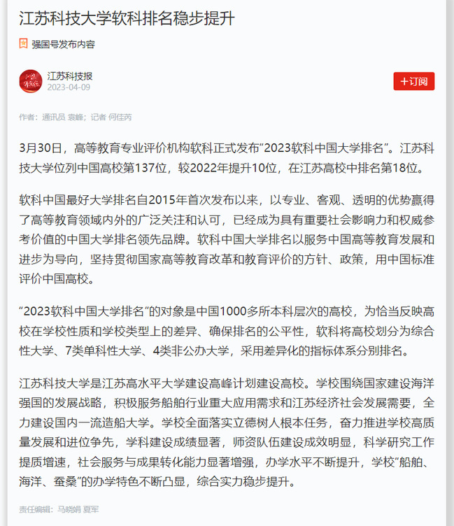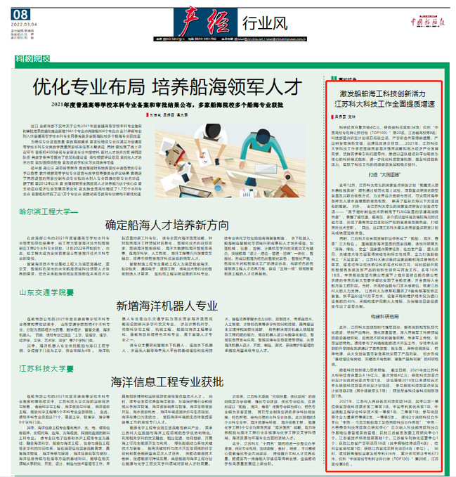 中国船舶报《激发船舶海工科技创新活力 江苏科大科技工作全面提质增速》(2022年3月4日)