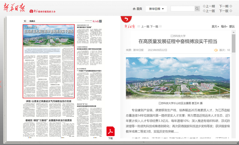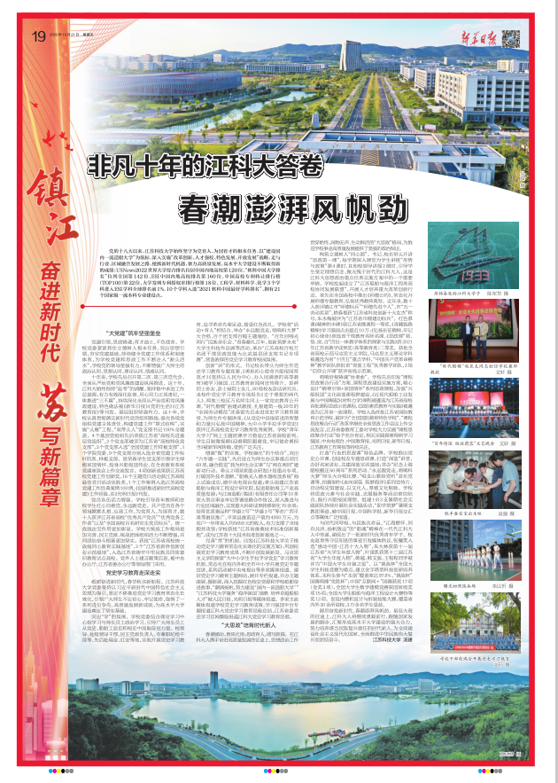 新华日报《非凡十年的江科大答卷 春潮澎湃风帆劲》(2022年10月21日)