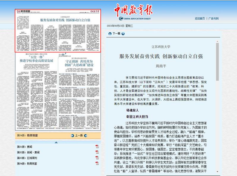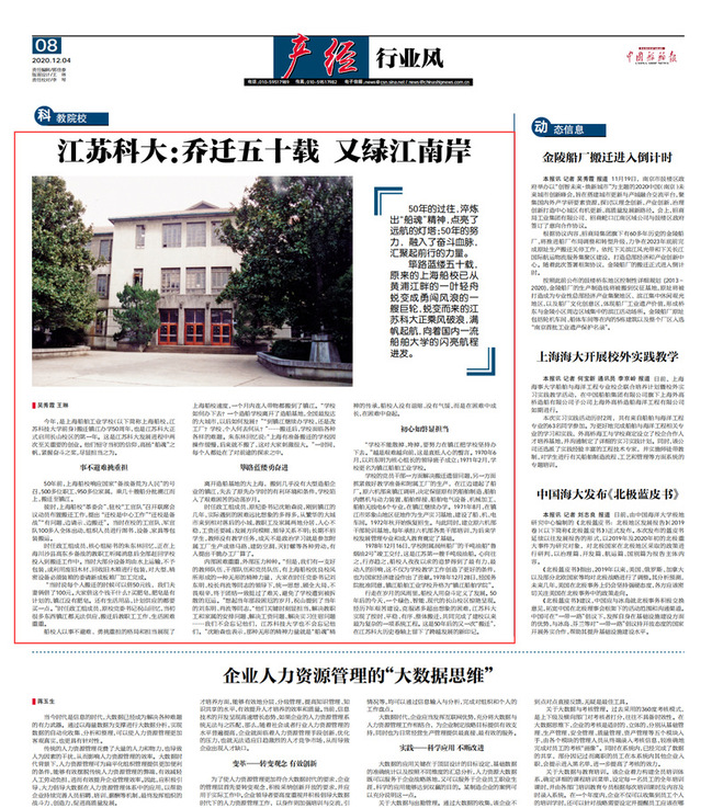 中国船舶报《江苏科大:乔迁五十载 又绿江南岸》(2020年12月4日)