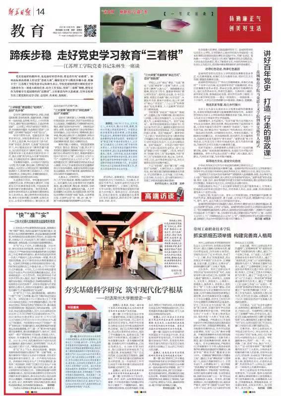 新华日报《“快”“准”“实”——江科大纪委扎实推进政治监督有形有效》(2021年10月26日)