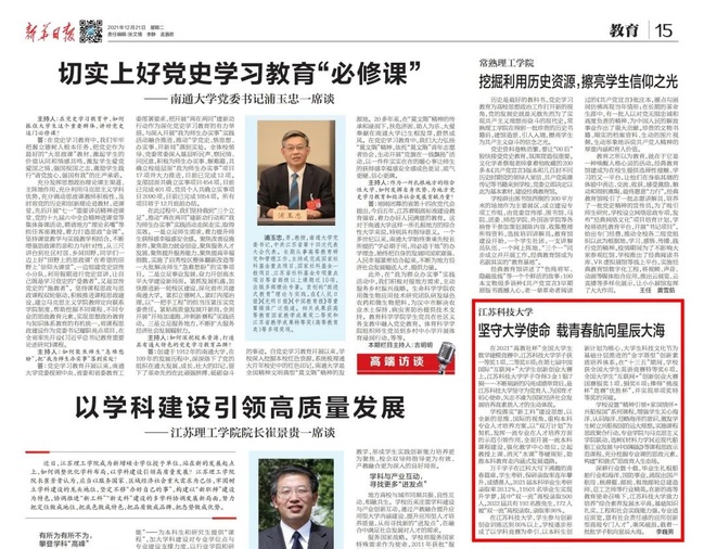 新华日报《安博体育手机版坚守大学使命 载青春航向星辰大海》(2021年12月21日)