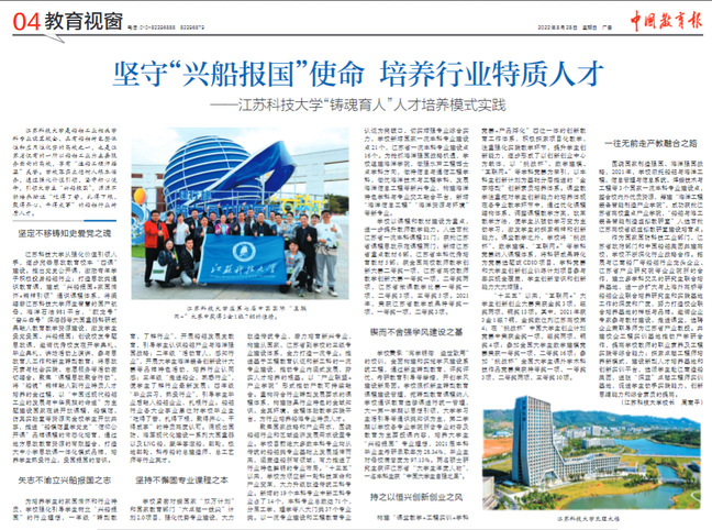 中国教育报《坚守“兴船报国”使命 培养行业特质人才——安博体育手机版“铸魂育人”人才培养模式实践》(2022年8月28日)