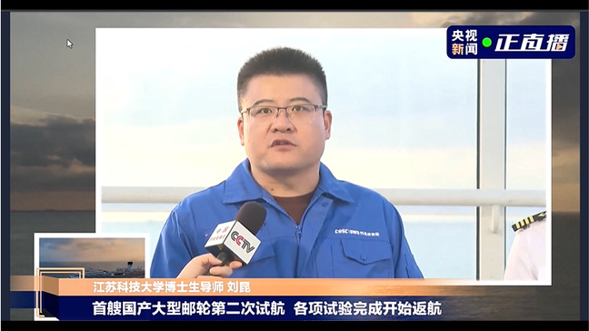 央视新闻《我国首艘国产大型邮轮第2次试航成功!江科大教师参与研发并接受采访》