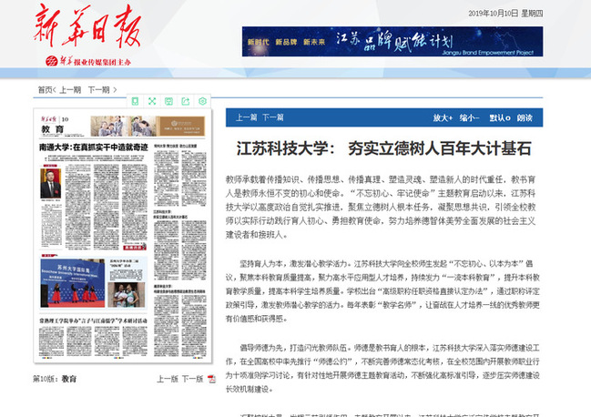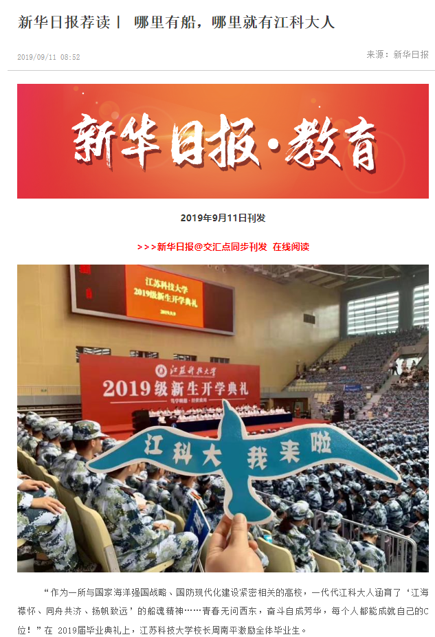 新华日报《哪里有船,哪里就有江科大人》(2019年9月11日)