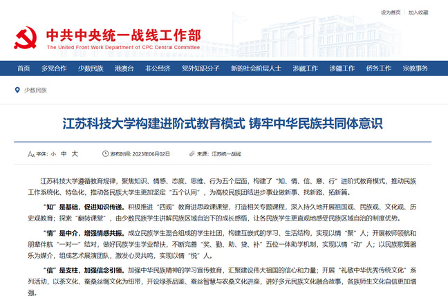 中共中央统一战线工作部《安博体育手机版构建进阶式教育模式铸牢中华民族共同体意识》