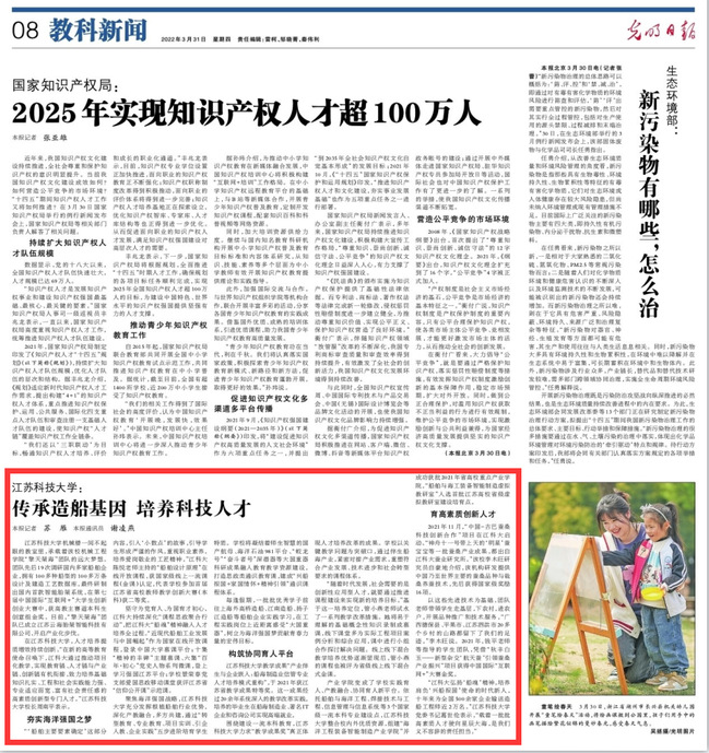 光明日报《传承造船基因 培养科技人才》(2022年3月31日)