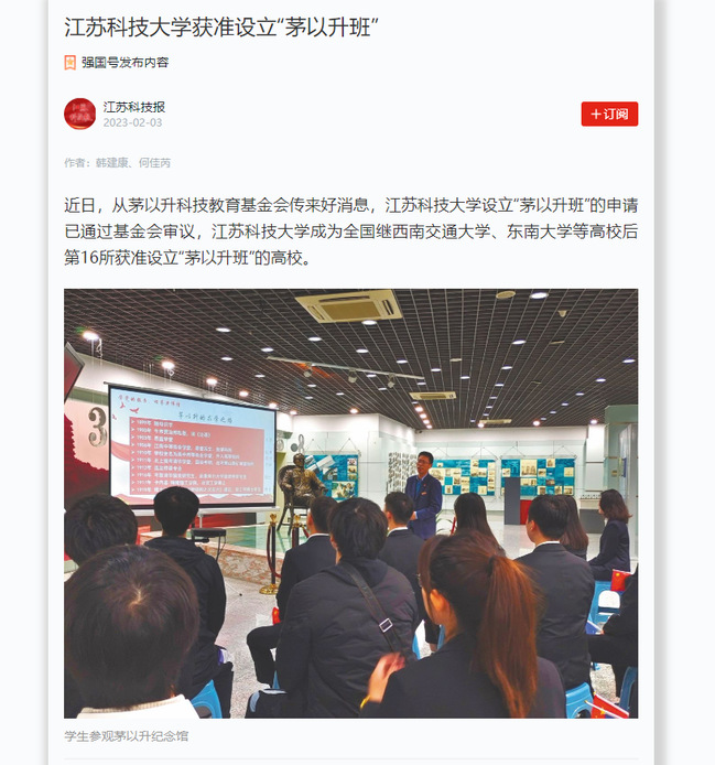 学习强国《安博体育手机版获准设立“茅以升班”》(2023年2月3日)