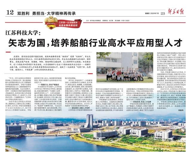 新华日报《安博体育手机版:培养船舶行业高水平应用型人才》(2020年7月23日)