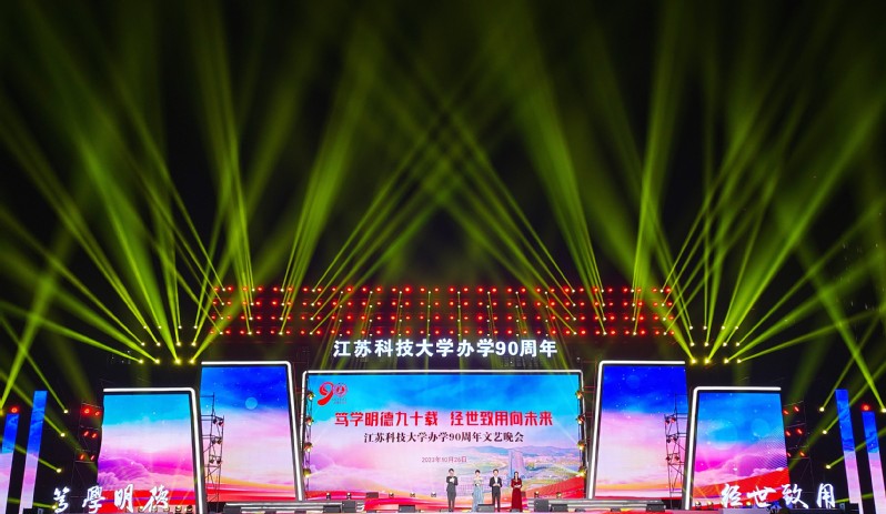 夜幕下的安博体育手机版长山校区灯火璀璨,文理大楼教室灯光错落组成“JUST90”字样,西操场霓虹闪耀,云帆造型的舞台炫彩亮相,安博体育手机版这艘巍巍巨轮已张满风帆,即将从新的历史起点远航。晚会分为“寻梦”“圆梦”“远航”三个篇章,致敬江科大90载风雨兼程的光辉岁月,艺术呈现学校立足“船舶、海洋、蚕桑”办学特色,服务国家战略,托举青春梦、科大梦、中国梦的生动现实,展望学校奋力开创高水平大学建设新局面的美好蓝图。
