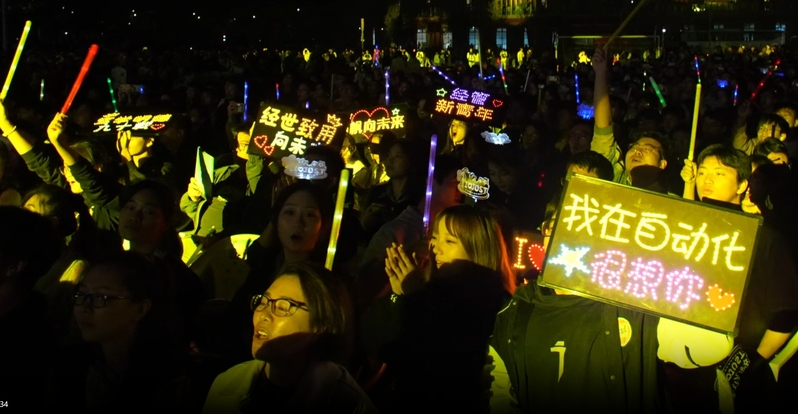 晚会现场,一幅创意自制灯牌点亮了操场一角,制作者体育学院大三学生艾欣祺介绍“从购买材料到制作成品花了五天时间。这是我给学校过生日的专属仪式感!”校团委书记张海洋介绍,文艺晚会参演人员300多位,包括学校团委艺术中心教师、辅导员、学生、离退休教师、学校附属幼儿园小朋友,其中还有7位校友代表。为了致敬办学90周年,导演组从半年前开始筹划编排,全体演职人员利用暑假和十一小长假时间抓紧排练,确保了晚会的华彩呈现。无人机节目总编孙静表示,此次表演是团队主动参与和学校邀请的双向奔赴,节目通过展现办学90周年元素,带来现场极致观感体验。船海学院辅导员刘星在办学80周年时还是一名江科大学生,办学90周年晚会上,作为江科大老师参演《领航》节目。正在河南科技大学读研的2020届毕业生赵青秀参演朗诵《献给你,我的母校》,她表示非常荣幸被邀请与几位优秀校友共同表演,为母校取得的辉煌成就感到非常自豪。在庆典上表演《龙腾长山》的南京邮电大学龙狮团成员、大二国际经济与贸易专业时子涵说,为了此次《龙腾长山》群舞表演,团队花了一个月时间进行排练,非常高兴能参加此次演出。