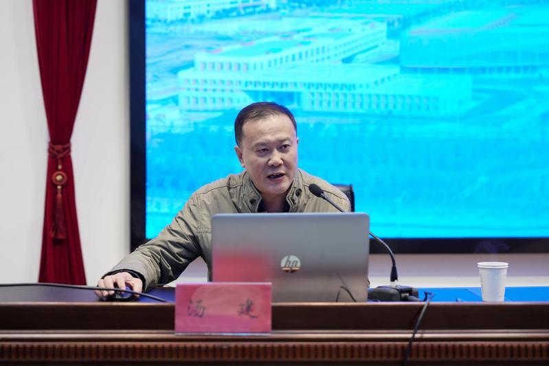 为坚持立德树人,厚植家国情怀,涵养学生特质,教育引导青年大学生传承红色基因,启迪智慧、砥砺品格,实现人生目标,11月23日下午,学校党委副书记汤建走进深蓝学院新生转型教育课堂,开展以《传承红色基因赓续校史荣光》为主题的校史校情专题教育。本次课程由深蓝学院党总支书记、院长杨建超主持,300余名新生代表在演讲厅主课堂听讲,其余学生和辅导员在各分课堂同步直播视频学习。