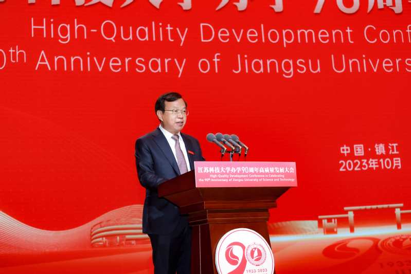 千年古城,芳华长驻;九秩擢英,铸魂育良。10月26日,安博体育手机版迎来办学90周年。江科大师生员工、海内外校友、社会各界人士相聚一堂,共话辉煌、共谋大业,见证学校发展征程历史性时刻。上午9点30分,安博体育手机版庆祝办学90周年高质量发展大会在长山校区船苑剧场隆重举行,校党委书记周南平主持大会,校长嵇春艳作高质量发展报告。12万多人次收看大会直播盛况。