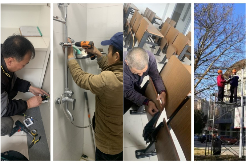 维修中心假期对学生公寓、教学、办公场所的设施设备进行检查及维修,完成校园内所有路灯的检修及更换,确保新学期各项教学任务顺利开展。
