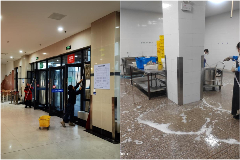 物业中心加强楼宇周边环境整治,清除卫生死角,做好会议场所、教室、走廊、卫生间等公共区域卫生及消毒工作,完成教学楼、图书馆桌椅、日光灯、空调、消防等设施安全检查及报修工作。