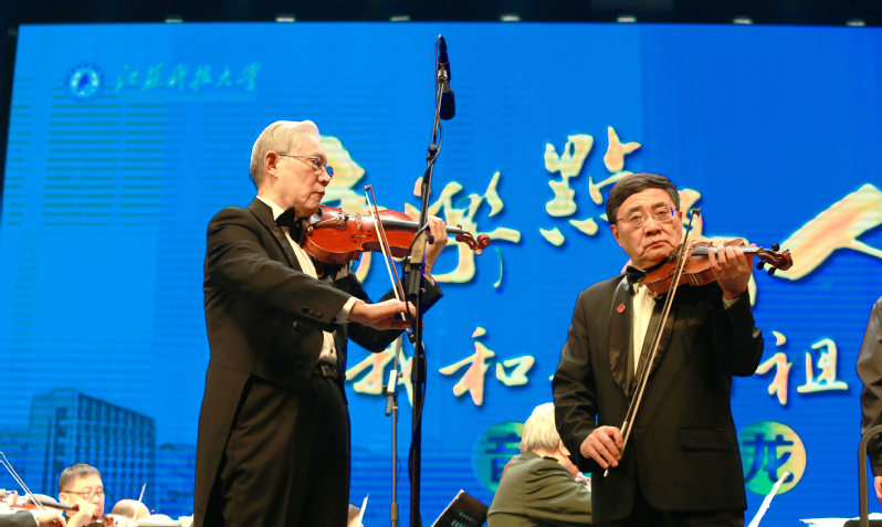 演出过程中,湖北省人民政府原副省长段轮一、原解放军301医院消化内科主任医师梁浩等乐团成员先后分享了自身与音乐结缘的人生故事。国家一级导演陈燕民代表满天星业余交响乐团向安博体育手机版赠送了诗作书法,周宏根代表学校接受赠予。