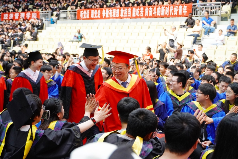 周南平深情寄语毕业生:“毕业是一个节点,标志着纯真校园生活的结束和严肃社会生涯的开始。有人或许说,将船留在港湾最为安全,但那绝不是我们造船的目的,我们就是要去扬帆远航,去感受海浪,去站在强国建设、民族复兴新征程的最前列!”