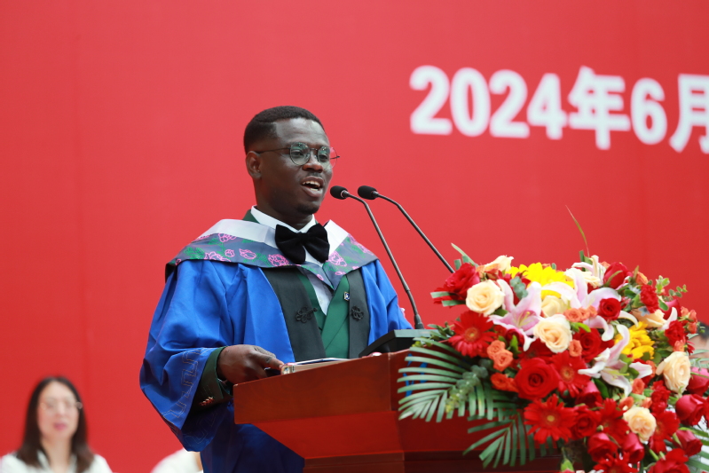 仪式见证成长,感言彰显担当。本科生代表船舶与海洋工程学院何祯学表达了对未来践行兴船报国理想的无限展望;留学生代表、海外教育学院文迪池深情感谢母校的培育和关爱;研究生代表、土木工程与建筑学院赵祥冉回首逐梦科大的美好旅程,表示将接续奋斗,用实际行动深耕基层沃土。