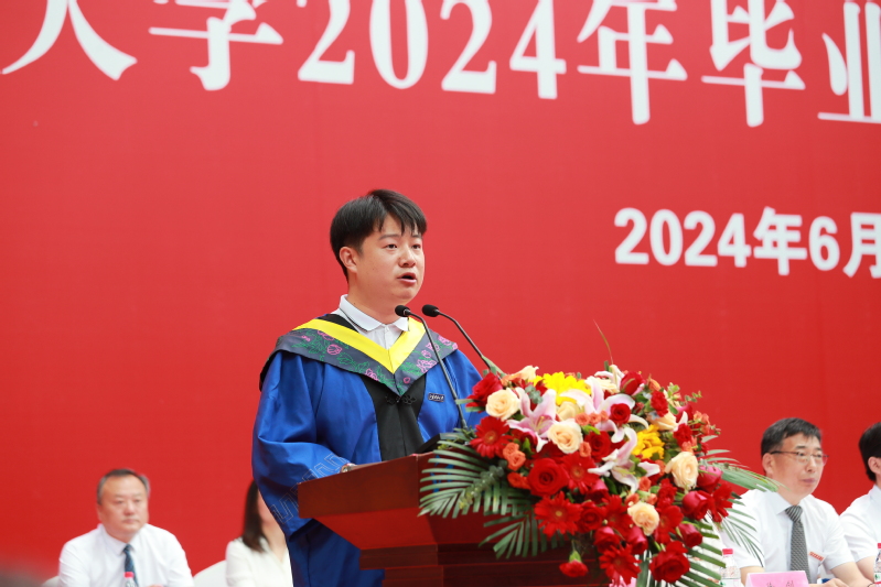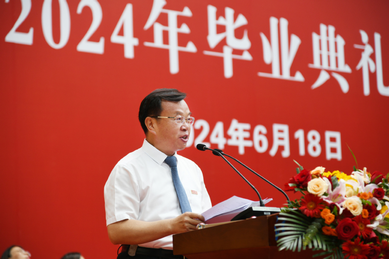 校党委常委、副校长胡爱祥主持毕业典礼和学位授予仪式,代表学校向砥砺前行、满载收获的毕业生送上最诚挚的祝福,向传道授业、培根铸魂的老师们表达最崇高的敬意,向关心学校发展、支持学生成长成才的毕业生亲友及社会各界人士,表示最衷心的感谢。